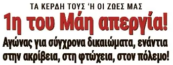 ΠΡΩΤΟΜΑΓΙΑ 2024: Όλοι σήμερα στην απεργία, όλοι στις πρωτομαγιάτικες συγκεντρώσεις