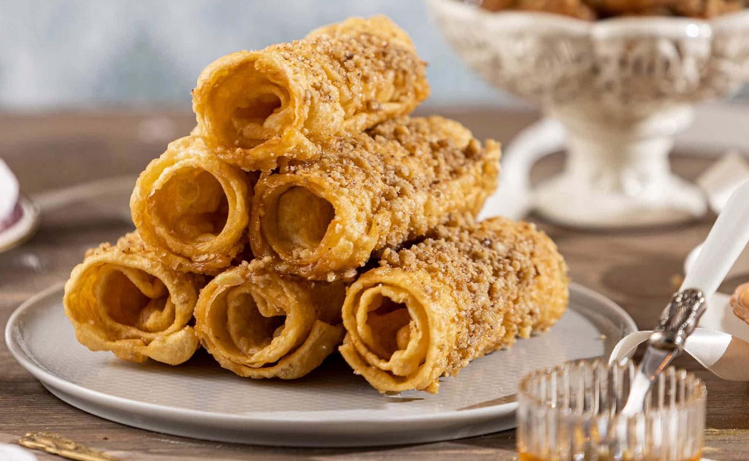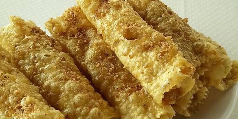 5️⃣ Παίρνουμε ένα κομμάτι ζύμης από αυτά που κόψαμε. Το ανοίγουμε λίγο ακόμη με τα χέρια και το ρίχνουμε στο λάδι και _όσο είναι ακόμη μαλακό, το γυρνάμε και από την άλλη πλευρά. Ύστερα το τσιμπάμε από τη μια άκρη με ένα πιρούνι και το τυλίγουμε για να πάρει το στρογγυλό παραδοσιακό σχήμα του σωλήνα.