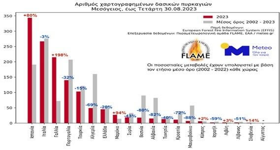 Το πρώτο δεκαπενθήμερο του Αυγούστου του 2025 η WWF ανακοίνωσε ότι κάηκε έκταση μεγαλύτερη από το μέσο όρο εικοσαετίας στην Ελλάδα, σύμφωνα με στοιχεία που άντλησε από το EMSCopernicous. Συγκεκριμένα, σύμφωνα με τις αρχικές εκτιμήσεις του EMSCopernicous, στις πυρκαγιές που ξέσπασαν σε Χίο, Φιλιππιάδα, Ζάκυνθο, Αχαΐα, Κερατέα-Παλαιά Φώκαια και Χελιδόνι Ηλείας πάνω από 130.000 στρέμματα έγιναν στάχτη. Και ακόμα έχουμε μέλλον μπροστά μας για το τέλος της αντιπυρικής περιόδου.