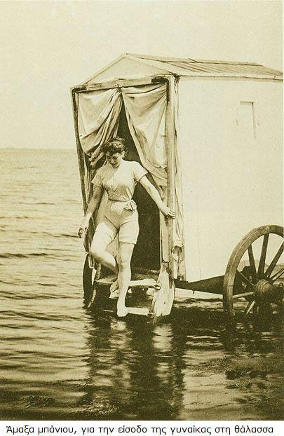 Το περιοδικό Εστία, σε τεύχος του 1903, περιγράφει τους στυλιστικούς κανόνες για τα φορέματα κολύμβησης της εποχής και τα αξεσουάρ που πρέπει να τα συνοδεύουν: