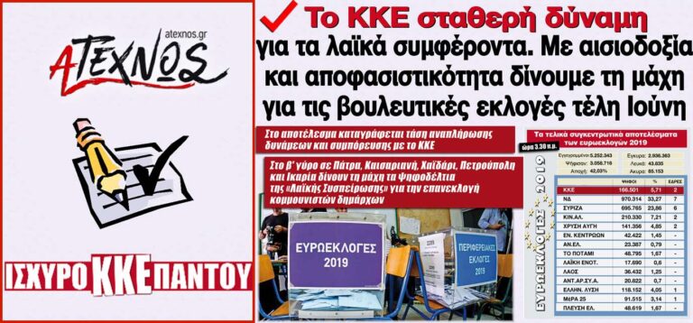 Οι εκλογές της 26ης Μαΐου, τέλειωσαν και έχουμε πολύ μαλλί να ξάνουμε (πάντως, ανεξαρτήτως βουλευτικών ante portas, όχι παραπάνω από το αναμενόμενο). Έτσι κι αλλιώς, χωρίς να υποτιμάμε τη σημασία της, η εκλογική διαδικασία αποτελεί ένα μικρό μέρος της δουλειάς μας, που σαν ΚΚΕ “παντός καιρού” κινείται πολύ πέρα απ’ αυτή (τόσο στρατηγικά, όσο και στην καθημερινή μας δράση). Μέχρι στιγμής σαν “ειδήσεις σε τίτλους” έχουμε: