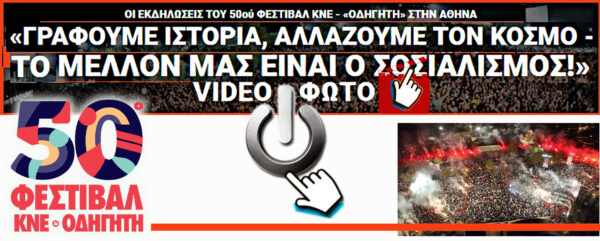 Το 50ό Φεστιβάλ ΚΝΕ – “Οδηγητή”, με σύνθημα “Γράφουμε Ιστορία, αλλάζουμε τον κόσμο – Το μέλλον μας είναι ο σοσιαλισμός!”, κορύφωσε το ταξίδι του στην Αθήνα 18, 19, 20 και 21 Σεπτεμβρίου, στον χώρο του Πάρκου Περιβαλλοντικής Ευαισθητοποίησης “Αντώνης Τρίτσης”.