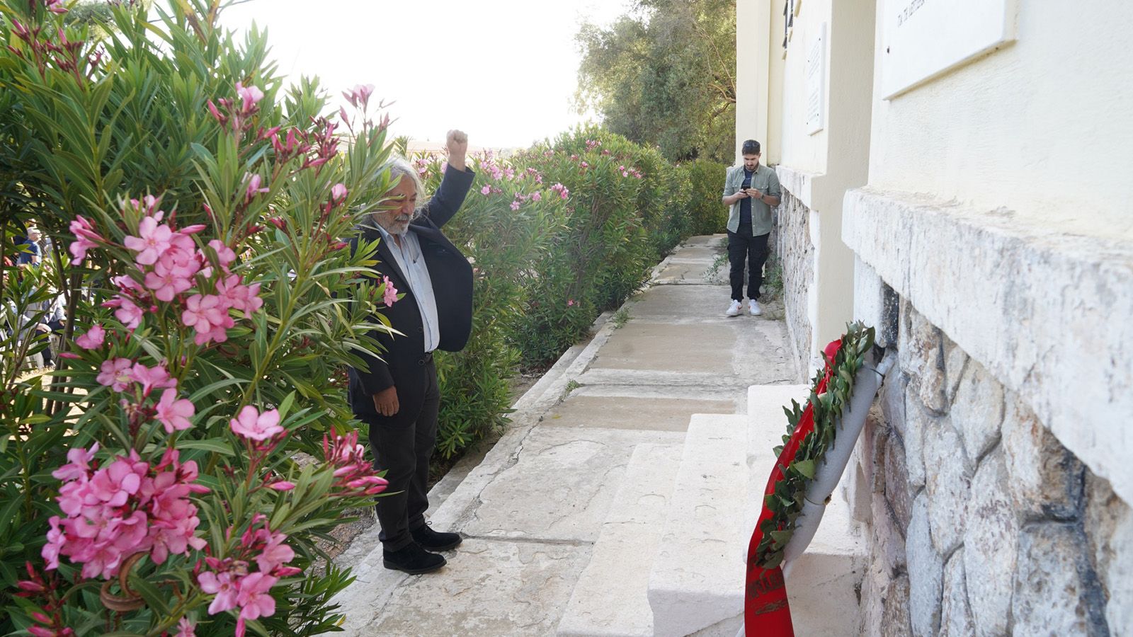 Όπως τόνισε χαρακτηριστικά, δεν υποχώρησαν, δεν εγκατέλειψαν τον αγώνα τους για μια άλλη κοινωνία παρά τα φριχτά βασανιστήρια, παρά τις κάννες των όπλων που στρέφονταν καταπάνω τους για να τους εκτελέσουν. Όπως είπε, έτσι πρέπει κι εμείς σήμερα να βαδίσουμε στον ίδιο δρόμο του αγώνα, μέχρι να ξημερώσουν καλύτερες μέρες για το λαό μας.