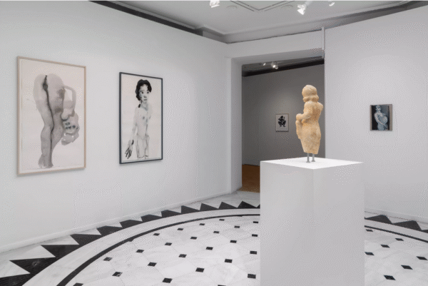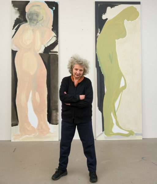 Τα δύο πιο πρόσφατα έργα που εκτίθενται, το “Γηραιό” και η “Φανταστική Εποχή” (και τα δύο το 2025), δείχνουν μια νέα πλευρά της καλλιτέχνιδας. Μοιράζονται τις μνημειώδεις διαστάσεις της “Μις Ιανουάριος”, αλλά δεν θα μπορούσαν να είναι πιο διαφορετικά. Πρόκειται για χλωμές, φασματικές φιγούρες, λίγο περισσότερο από σιλουέτες παγωμένες στο χρόνο στο ταξίδι τους στη λήθη.