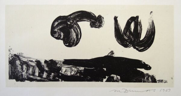 Περίπου 40 από τους πίνακες και τα σχέδια της καλλιτέχνιδας (που χρονολογούνται από το 1992 έως σήμερα) εκτίθενται στην έκθεση της Αθήνας, η οποία είναι εν μέρει αναδρομική, εν μέρει νέα δουλειά. Παρουσιάζονται παράλληλα με τη συλλογή κυκλαδικών ειδωλίων του μουσείου, τα οποία η Ντυμάς έχει κατά καιρούς αξιοποιήσει στο έργο της. Μια έκθεση, σαν ένα είδος ορχήστρας δωματίου που εκφράζει μια επισκόπηση, παρά μια πλήρη συμφωνία, που η ίδια η 71χρονη Ντυμάς αποκάλεσε “πολύ οικεία… μελαγχολική, στοχαστική” και είναι εύκολο να καταλάβει κανείς γιατί. Πέρα από την αναφορά της στη μελαγχολία ως μια κατάσταση θλιβερής ενδοσκόπησης, τα δίδυμα φαντάσματα της __γήρανσης και θνησιμότητας στοιχειώνουν την παράσταση. Το Candle (2020), για παράδειγμα, είναι ένα όμορφα απλό memento mori, που αγγίζει τα όρια της αφαίρεσης, το οποίο αντηχεί την εξαιρετική ακινησία εικαστικών όπως (κάνοντας μια λίγο αδόκιμη σύγκριση) οι Gerhard Richter, Mark Rothko και Barnett Newman. _σσ. “Memento mori” είναι λατινική φράση που σημαίνει “να θυμάσαι ότι είσαι θνητός” ή “να θυμάσαι ότι θα πεθάνεις”, μια συμβολική ιδέα και πρακτική που χρησιμεύει ως υπενθύμιση της θνητότητας και της εφήμερης φύσης των επίγειων απολαύσεων.
