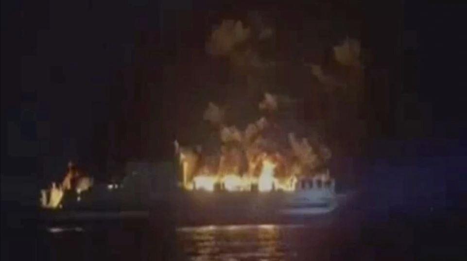 Μεγάλη φωτιά ξέσπασε σε επιβατηγό-οχηματαγωγό πλοίο με 237 επιβάτες και 51 άτομα πλήρωμα λίγη ώρα μετά την αναχώρησή του από το λιμάνι της Ηγουμενίτσας τα ξημερώματα της Παρασκευής. Κατά πληροφορίες, ο πλοίαρχος του πλοίου ενημέρωσε ότι όλοι οι επιβαίνοντες είναι καλά στην υγεία τους και περισυλλέγονται από παραπλέοντα πλοία, σκάφη του λιμενικού και της ιταλικής ακτοφυλακής. Το Euroferry Olympia, που πλέει υπό σημαίας Ιταλίας, είχε αναχωρήσει με προορισμό το Μπρίντιζι και πλέει βορειοανατολικά της νήσου Ερεικούσας. Μέχρι στιγμής παραμένει άγνωστη η αιτία εκδήλωσης της φωτιάς, που φαίνεται να ξεκίνησε από το κατάστρωμα 3 και είναι ανεξέλεγκτη. Επιβάτης μίλησε στο MEGA…