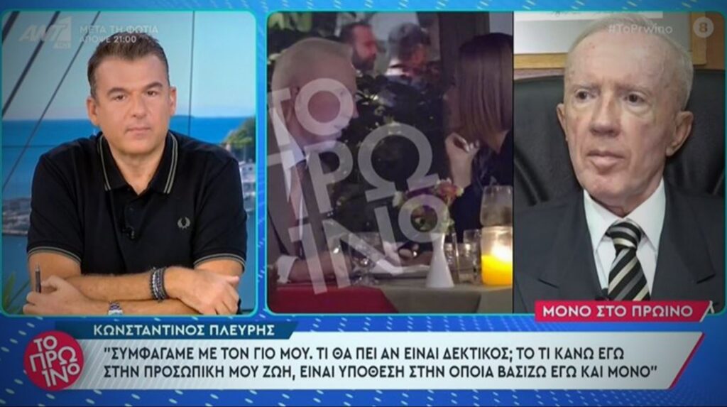 Σε ενα εμετικό και χυδαίο ξέπλυμα, η πρωινή εκπομπή του Λιάγκα στον ΑΝΤ1 αφιέρωσε ολόκληρο ρεπορτάζ στις… γεροντοκαψούρες του δηλωμένου φασίστα Κων/νου Πλεύρη. Αυτού που στο δικαστήριο για την δολοφονία Φύσσα, προέβη σε προκλητικούς ναζιστικούς χαιρετισμούς. Μέχρι και συνέντευξη του πήραν, ξεπλένοντας ουσιαστικά το χουντικό απολειφάδι που «στα 85 του βρήκε τον έρωτα»… Εμετός. Αηδία. Ξεφτίλα.