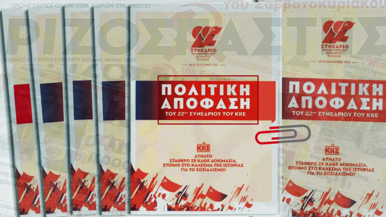 Ένθετο στον “Ριζοσπάστη του Σαββατοκύριακου” Η Πολιτική Απόφαση του 22ου Συνεδρίου του ΚΚΕ Μεγάλη πανεξόρμηση από τις Οργανώσεις του Κόμματος…