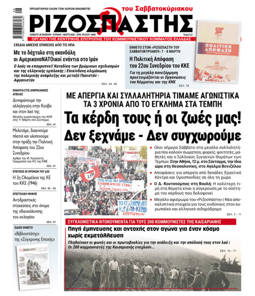 “Ριζοσπάστης” Σαββατοκύριακου 28 Φλεβάρη – 1 Μάρτη