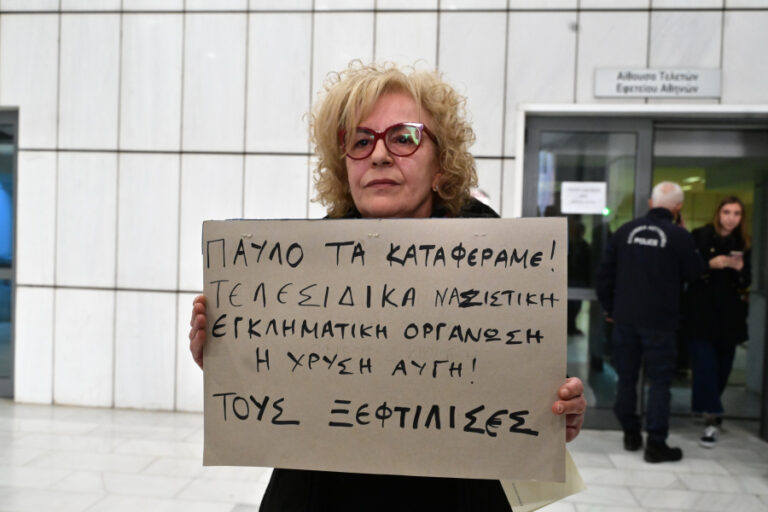 Δακρυσμένη η Μάγδα Φύσσα, η μαυροφορεμένη γυναίκα που δεν έχασε σχεδόν καμία δικάσιμο ούτε του πρώτου, ούτε του δεύτερου δικαστηρίου, λίγο πριν αποχωρήσει από το Εφετείο είπε: “Παίρνω τον Παύλο μου και φεύγω”.