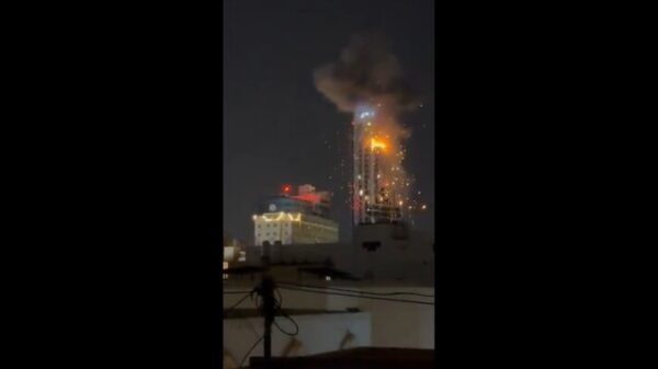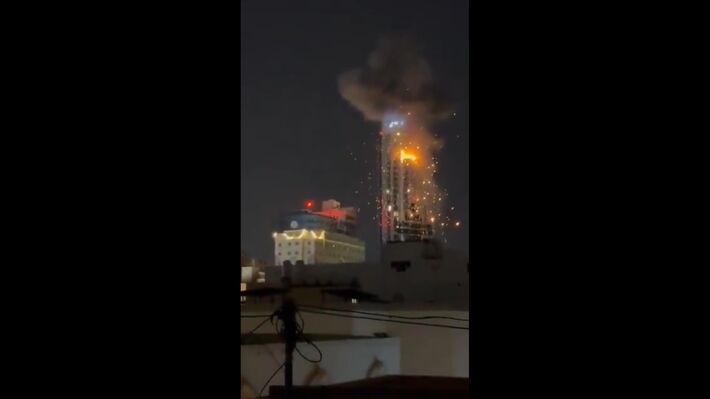 Η παρακάτω εικόνα αποδίδεται σε πλήγμα ιρανικού drone σε συγκρότημα κατοικιών στο Μπαχρέιν όπου διαμένουν αξιωματούχοι των ΗΠΑ.