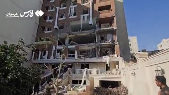 In Ahvaz, the building shows extensive structural damage consistent with a powerful explosion, with collapsed floors, shattered… pic.twitter.com/Inuu57XQXt