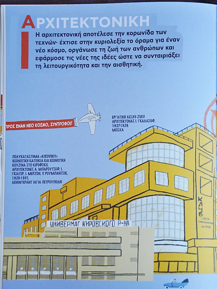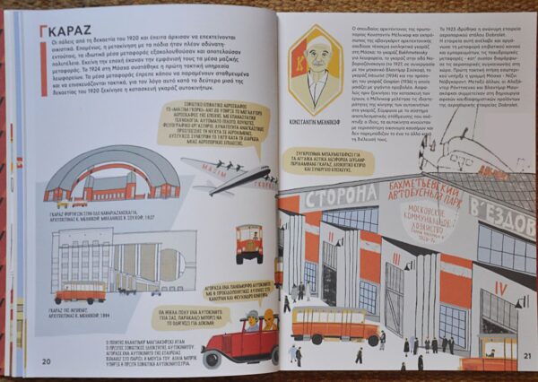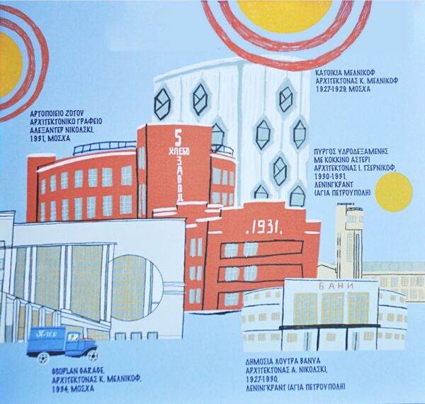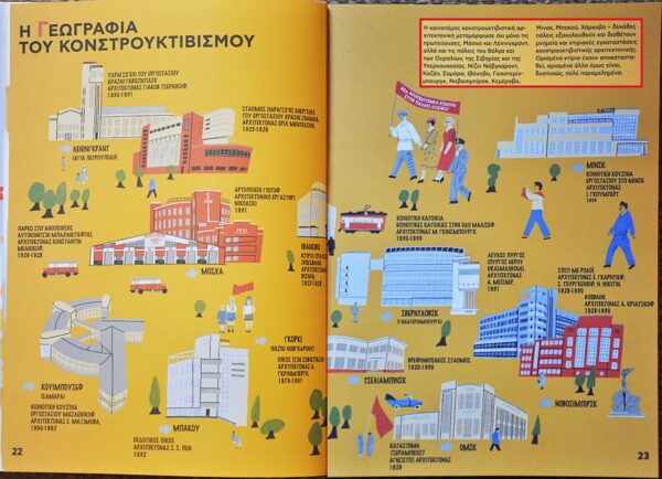 Εικονογραφημένος θησαυρός για ένα από τα πιο σημαντικά φαινόμενα στη σοβιετική και παγκόσμια κουλτούρα, ένα φαινόμενο που διαμόρφωσε τον σύγχρονο κόσμο – στην αρχιτεκτονική, την κατασκευή, τις κοινωνικές σχέσεις, ακόμη και στο σχεδιασμό των ίδιων των βιβλίων. Οι εικονογραφήσεις και τα σύντομα κείμενα της Tanya Safonova εξηγούν σε παιδιά ως 100 χρόνων πώς ζούσαν οι άνθρωποι εκείνη την εποχή, στη μεγάλη σοσιαλιστική χώρα πώς άλλαζε ραγδαία _προς το καλύτερο η ζωή τους, πώς οργανώνονταν οι διακοπές και οι κουζίνες των εργοστασίων και ποιες ιδέες ενέπνευσαν το κίνημα του Κονστρουκτιβισμού.