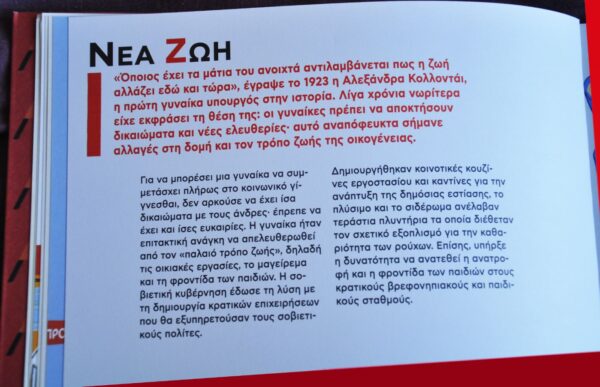 Νέα ζωή: οι γυναίκες έπρεπε, να αποκτήσουν δικαιώματα και νέες ελευθερίες· αυτό αναπόφευκτα σήμαινε αλλαγές στη δομή και τον τρόπο ζωής της οικογένειας. Για να μπορέσει μια γυναίκα να συμμετάσχει πλήρως στο κοινωνικό γίγνεσθαι, δεν αρκούσε να έχει ίσα δικαιώματα με τους άνδρες· έπρεπε να έχει και ίσες ευκαιρίες. Η γυναίκα ήταν επιτακτική ανάγκη να απελευθερωθεί από τον “παλαιό τρόπο ζωής”, δηλαδή τις οικιακές εργασίες, το μαγείρεμα και τη φροντίδα των παιδιών. Η σοβιετική κυβέρνηση έδωσε τη λύση με τη δημιουργία κρατικών επιχειρήσεων… δημιουργήθηκαν κοινοτικές κουζίνες εργοστασίου και καντίνες για την ανάπτυξη της δημόσιας εστίασης, το πλύσιμο και το σιδέρωμα ανέλαβαν τεράστια πλυντήρια τα οποία διέθεταν τον σχετικό εξοπλισμό για την καθαριότητα των ρούχων. Επίσης, υπήρξε η δυνατότητα να ανατεθεί η ανατροφή και η φροντίδα των παιδιών στους κρατικούς βρεφονηπιακούς και παιδικούς σταθμούς. Όλα αυτά, στον υπόλοιπο κόσμο ήταν άγνωστα.