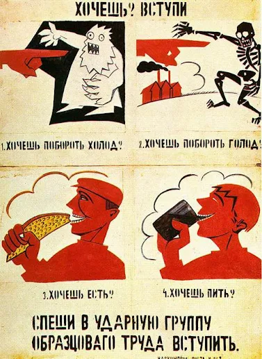 - Προπαγανδιστικό ύφασμα (текстиль): έφερε παραδοσιακά σχέδια, όπως λουλούδια, καθώς και καινοτόμα σχέδια, όπως σφυροδρέπανο, τρακτέρ, θεριζοαλωνιστική μηχανή, αεροπλάνο και μηχανοκίνητο πλοίο, αστέρια και γρανάζια, ρουκέτες, εργοτάξια και εργοστάσια, αντανακλώντας τις κοινωνικοποληικές εξελίξεις που συνέβαιναν στη χώρα (εκβιομηχάνιση, εξηλεκτρισμός και κολεκτιβοποίηση). Τέτοια υφάσματα χρησιμοποιήθηκαν για τη δημιουργία προπαγανδιστικών αφισών και πανό κατά τα πρώτα έτη σύστασης της ΕΣΣΔ, καθώς επίσης και για το ράψιμο ρούχων.