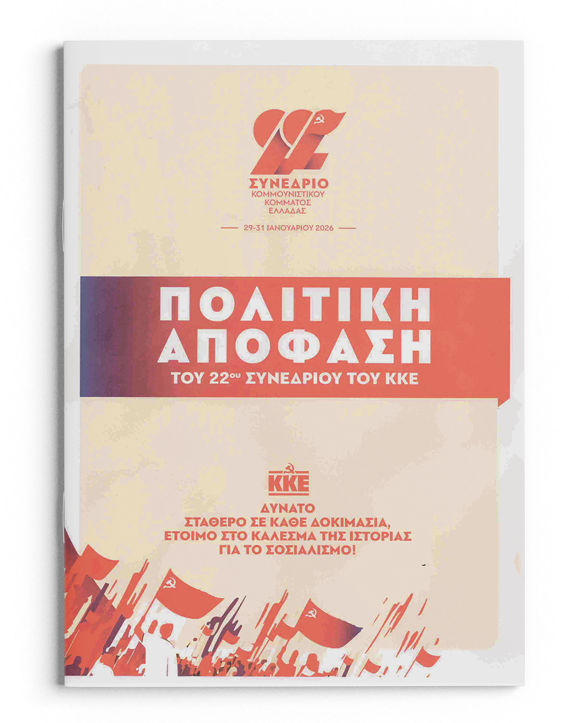 Διαδίδουμε πλατιά στην εργατική τάξη και στον λαό την Πολιτική Απόφαση του 22ου Συνεδρίου του Κόμματός μας, με το ίδιο μαχητικό πνεύμα που ολοκληρώθηκαν οι εργασίες του, η πλούσια προσυνεδριακή διαδικασία, η ουσιαστική εσωοργανωτική συζήτηση και η συζήτηση με χιλιάδες φίλους και οπαδούς του Κόμματος. Με πνεύμα ευθύνης, περηφάνιας και μαχητικής – ρεαλιστικής αισιοδοξίας για το δίκιο του αγώνα και την προώθηση του Προγράμματος του Κόμματος.