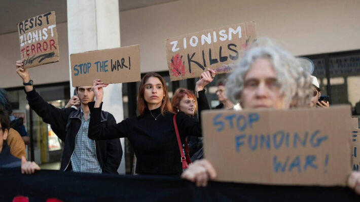 Την ίδια ώρα, δεκάδες διαδηλωτές πραγματοποίησαν διαμαρτυρία μπροστά από το κτίριο της αμερικανικής διπλωματικής αποστολής στο Τελ Αβίβ, κρατώντας ένα μεγάλο πανό με το σύνθημα «Ο ιμπεριαλιστικός πόλεμος δεν είναι απελευθέρωση».