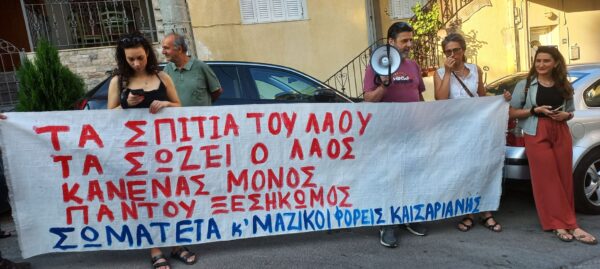 Γι αυτό και “μπαίνουμε μπροστά ασπίδα προστασίας, κινητοποιούμαστε όπως κάνουμε μήνες τώρα σε όλη την Ελλάδα για να σώσουμε τα σπίτια του λαού!” _αναφέρεται σε ανακοίνωση της Ένωσης Βιοτεχνών Επαγγελματιών Καισαριανής