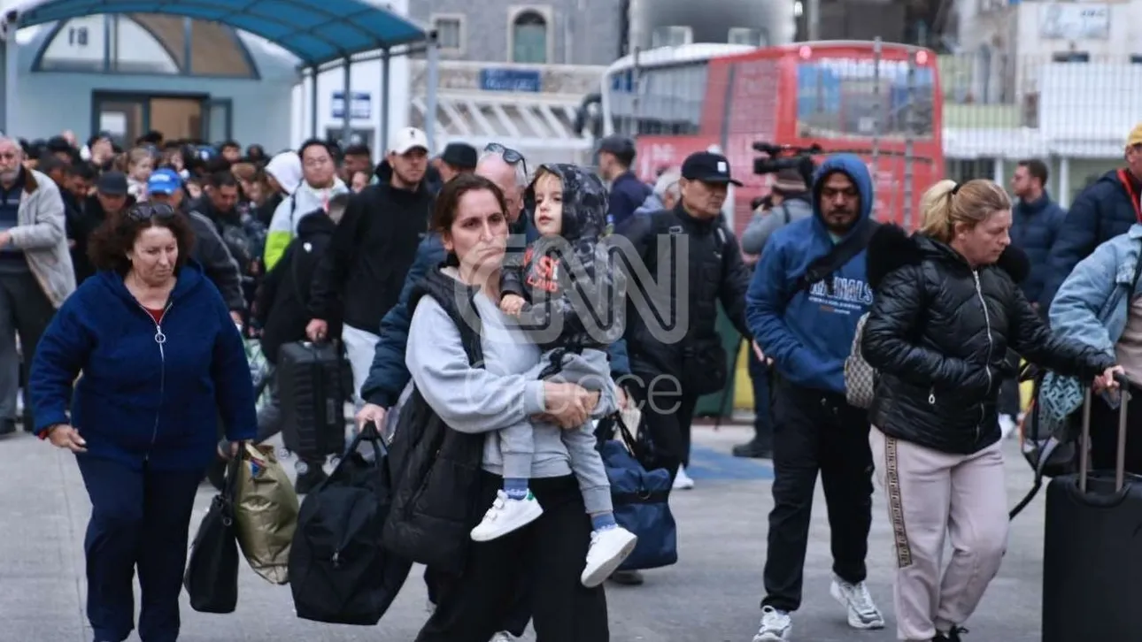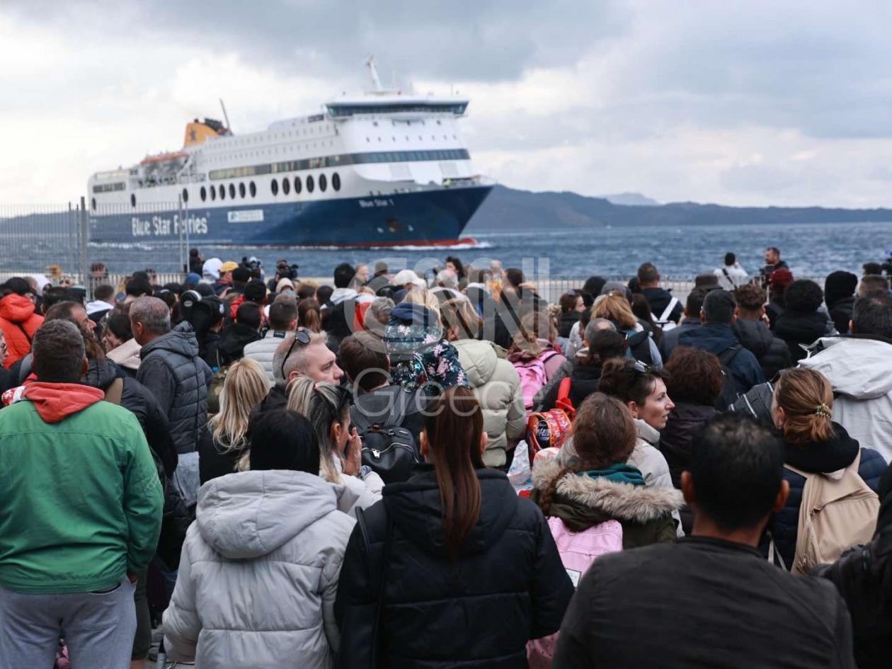 Ο φακός κατέγραψε πρωτόγνωρα για το νησί στιγμιότυπα, καθώς βρέφη, ηλικιωμένοι, κάτοικοι του νησιού και τουρίστες εγκαταλείπουν μαζικά τη Σαντορίνη με προορισμό το λιμάνι του Πειραιά.