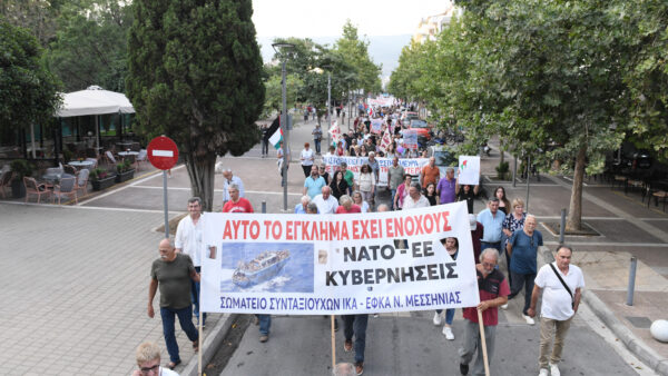 Και πρόσθεσε και για τη σημασία της κινητοποίησης: «Σήμερα, στέλνουμε όλοι μαζί το μήνυμα στην κυβέρνηση της ΝΔ, στα ευρωπαϊκά σαλόνια των Βρυξελλών, στους μακελάρηδες του ΝΑΤΟ. Σε όλες τις χώρες, τις κυβερνήσεις και όλα τα κόμμα που στηρίζουν και υλοποιούν την αιτία του κακού. Αυτού που γεννά πολέμους, εκμετάλλευση, προσφυγιά και θάνατο. Και η αιτία είναι τα κέρδη των λίγων.