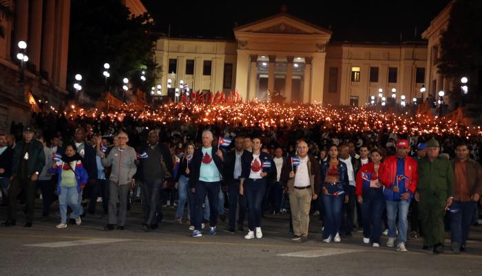 Χιλιάδες δάδες έλαμψαν για άλλη μια φορά. Άναψαν επειδή υπάρχει Πατρίδα, επειδή υπάρχει ελευθερία, επειδή δεν θα μας κλέψουν το μέλλον. Όλη η Κούβα για τον Μαρτί, για τον Φιντέλ, για τις αποφάσεις μας, για τα όνειρά μας. Έναν ενωμένο λαό που αγαπά και χτίζει, με χέρια και καρδιά. “Είθε αυτό το επαναστατικό, για τον Μαρτί και τον Φιντέλ φως να συνεχίσει να οδηγεί την ακλόνητη πεποίθηση ότι το να πεθάνεις για την πατρίδα είναι να ζεις”
