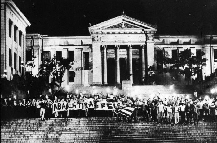 Για άλλη μια φορά, συγκεντρωνόμαστε σε αυτά τα ιστορικά σκαλιά του Πανεπιστημίου της Αβάνας, ενωμένοι σε μια δεμένη ομάδα, μια ομάδα που συνδέεται με την κυριαρχία και την αξιοπρέπειά μας. Όπως ακριβώς το 1953, ο Δάσκαλος δεν αφέθηκε να πεθάνει στην εκατονταετηρίδα του, σήμερα η νεολαία και ο λαός της Κούβας δεν θα αφήσουν τις ιδέες και την κληρονομιά του αήττητου Comandante en Jefe Fidel Castro Ruz να πεθάνουν.