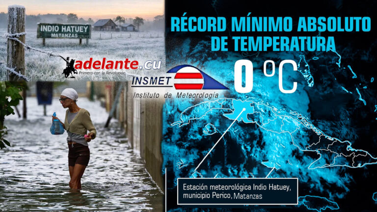 Σύμφωνα με πληροφορίες του adelante.cu και άλλων ΜΜΕ του νησιού της επανάστασης για πρώτη φορά στην Κούβα, θερμόμετρο κατέγραψε 0°C σημειώνοντας νέο ρεκόρ χαμηλής θερμοκρασίας στη χώρα στην πόλη Indio Hatuey, στην επαρχία Matanzas. Μάλιστα επιβεβαίωσε την παρουσία πάγου στις καλλιέργειες τη ζώνης, ένα ασυνήθιστο φαινόμενο σε τροπικό κλίμα