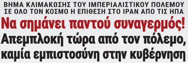 Όπως ήδη αναφέραμε, σήμερα Δευτέρα, μπροστά στις ραγδαίες εξελίξεις με την απροκάλυπτη επέμβαση και των ΗΠΑ στη Μέση Ανατολή κυκλοφορεί έκτακτα ο Ριζοσπάστης