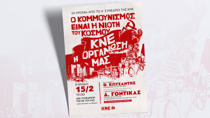 Το Κεντρικό Συμβούλιο της ΚΝΕ διοργανώνει μεγάλη πολιτική – πολιτιστική εκδήλωση προς τιμήν της συμπλήρωσης 50 χρόνων από το 1ο Συνέδριο της ΚNE, την Κυριακή 15 Φλεβάρη στις 19.00, στην Αίθουσα Συνεδρίων στην έδρα της ΚΕ του ΚΚΕ στον Περισσό (Λεωφ. Ηρακλείου 145).
