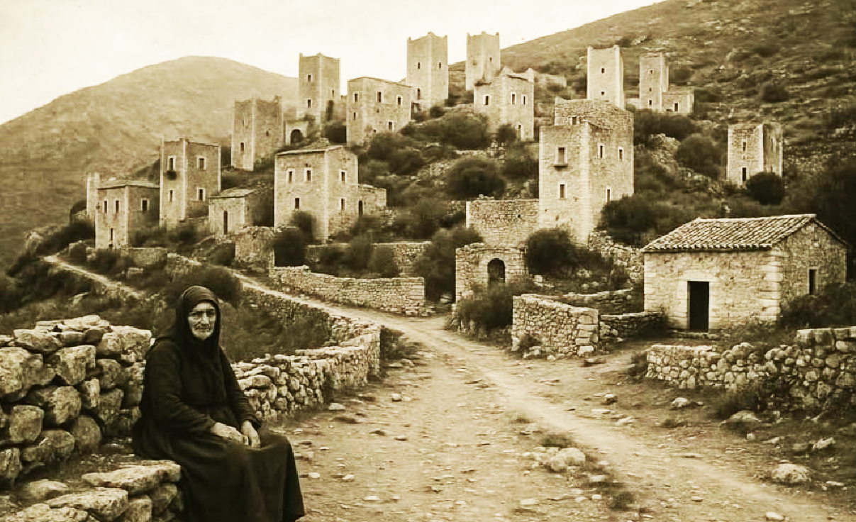 Το “Μάνη: Σιωπή και Πέτρα” καταρρέει, μόνο το άγριο, ανεμοδαρμένο τοπίο, όπου ακόμη κάποιοι παλιοί πύργοι (και χιλιάδες νέα δημιουργήματα _μαϊμούδες) ξεφυτρώνουν απ’ τη γη. Η γερόντισσα στη φωτογραφία —ντυμένη στα μαύρα, με μάτια που κουβαλούν πολέμους, γάμους, θρήνους και γενιές— δεν ποζάρει δεν μαρτυρεί πια. Η μάνα, γιαγιά, αδερφή, χήρα ό,τι απέμεινε να θυμίζει ότι εδώ οι άνθρωποι δε μιλούν πολύ, αλλά ζυγίζουν κάθε λέξη με τη σοβαρότητα του βράχου έγινε “πόλις εάλω”. Αυτή είναι η Μάνη· για όσους (ακόμη) την αντέχουν. Σήμερα γεμάτη από χάντρες για ιθαγενείς του Κολόμβου και μπιχλιμπίδια. Μονάχα η πέτρα παραμένει.