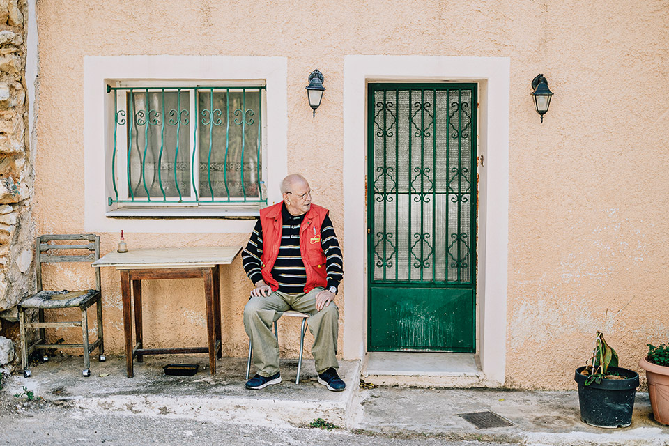 Συνεχίζει ο Χαριτόπουλος: “Είναι φυσικό”, σχολιάζει η Μαρία Σαμπατακάκη, ιστορικός και εισηγήτρια της έννοιας και πρακτικής της “δημόσιας και εφαρμοσμένης” Ιστορίας στην Ελλάδα, δημιουργός του “hιστορισταί” και με πρωταγωνιστικό ρόλο στο πολύ ενδιαφέρον ερευνητικό πρόγραμμα “Μανιάτικα dark”, που “τρέχει” σε συνεργασία με το μεταπτυχιακό Ψηφιακού Πολιτισμού του Πανεπιστημίου Πειραιά. Της ζητάω να μου πει περισσότερα γι’ αυτή τη δυσκολία να βγουν οι σκελετοί από την ντουλάπα. “Τα Μανιάτικα κουβαλούν μια δύσκολη κληρονομιά, διαμορφώθηκαν από το εθιμικό δίκαιο που έφεραν μαζί τους οι Μανιάτες, και αυτό περιλαμβάνει ουκ ολίγες αιματοχυσίες για λόγους τιμής και όχι μόνο. Συνήθως αυτές οι διενέξεις έληγαν με μια διαδικασία συμφιλίωσης των αντιπάλων που είχε τα χαρακτηριστικά ιεροτελεστίας. Άπαξ και οι εχθροί “φίλιωναν”, κανείς δεν μπορούσε να ανασύρει ούτε διά της εξιστόρησης την παλιά έχθρα. Επιπλέον, οι άνθρωποι σε παλιότερες κοινωνίες είχαν περάσει πολλά και είχαν μάθει –καλώς ή κακώς– να σωπαίνουν, ήταν ο τρόπος τους για να μη βρίσκουν τον μπελά τους αλλά και για να μπορούν να συνεχίσουν τη ζωή τους”…. Ο κύριος Κυριάκος Λεκοδημήτρης, έξω από το σπίτι του.