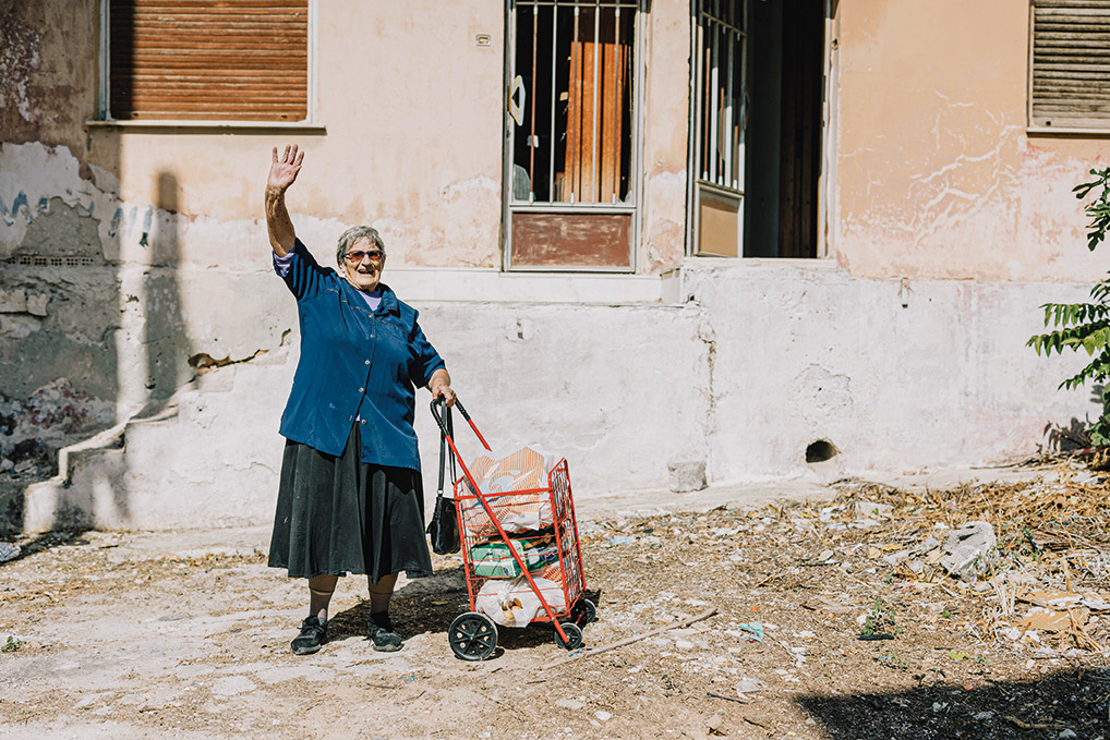Μάνη λοιπόν κάποτε με τους Πύργους της με ορθογώνια σχήματα και στενά ανοίγματα – αμυντικά χαρακτηριστικά της μανιάτικης κατοικίας, πέτρινα σπίτια χτισμένα χωρίς σοβά, δείγμα λαϊκής αρχιτεκτονικής και αυτάρκειας, σήμερα αλωμένη από την τουριστική (υπερ)εκμετάλλευση, αλλά πάντα τοπίο άγονο, τραχύ με ελαιόδεντρα και φρυγανώδη βλάστηση με κάποιους στενούς χωμάτινους ή μπετένιους δρόμους – με άφθονα τα ίχνη του σύγχρονου πολιτισμού (μεταξύ άλλων και σάπια αυτοκίνητα εδώ κι εκεί). Η ηλικιωμένη _ντυμένη στα μαύρα, με παραδοσιακή φορεσιά χηρείας – σύμβολο της σεμνότητας και σεβασμού στην παράδοση γυναίκα είναι πια στα παρδαλά της. Κάθεται ακόμη στις ξερολιθιές – δείγμα του τρόπου με τον οποίο δομούνταν τα αγροτικά περιβάλλοντα, αλλά και στις μπυρερίες και τις καφετέριες.