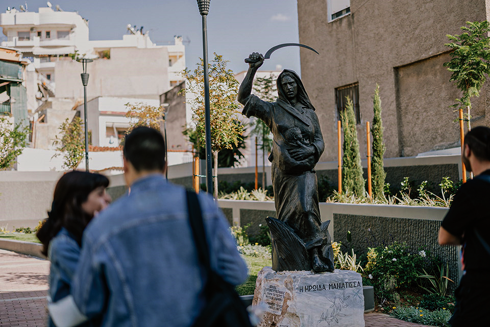 Καλώς ήρθατε στα Μανιάτικα (του Πειραιά)· εδώ που οι κυλιόμενες σε βγάζουν σε μια καινούργια νεόκοπη _υποτυπώδη πλατεία, που γεννήθηκε μαζί με τον σταθμό· αυτός είναι ο πρώτος new style κοινόχρηστος χώρος σε ολόκληρα τα Μανιάτικα. Και, για να μπει η γειτονιά στον χάρτη του μετρό, χρειάστηκε να απαλλοτριωθούν κάποια παλιά σπίτια _μισοερείπια: την ησυχία που επικρατεί στην επιφάνεια της πλατείας, παρά το πηγαινέλα των επιβατών, διακόπτει η μεσόκοπη κυρία _ “εδώ κοίτα Σοφία με λένε” … “Εμείς οι Μανιάτες είμαστε ήσυχοι άνθρωποι. Αρκεί να μη μας πειράξεις”, λέει με νόημα από το μπαλκονάκι της σε ένα προπολεμικό σπίτι στον λόφο του Βώκου, το ανατολικό όριο της συνοικίας, παραπέμποντας στο βιβλίο του Χαριτόπουλου (Εκ Πειραιώς _εκδόσεις Τόπος), τη δική του βιωματική ανθολογία της πόλης όπου γεννήθηκε: “Στα Μανιάτικα επικρατεί μια απατηλή ηρεμία που δεν συναντάς σε καμία άλλη συνοικία του Πειραιά, που οι άνθρωποι μιλάνε δυνατά, γελάνε, κάνουν παρέα, τσακώνονται, τα ξαναφτιάχνουν και πάλι φίλοι είναι. Στα Μανιάτικα δεν έχει γέλια, τραγούδια και ελαφρότητες, όλοι είναι σκυθρωποί και τσιτωμένοι και η κάθε ήσυχη ημέρα που περνάει μοιάζει εύθραυστη εκεχειρία σε εμπόλεμη ζώνη. Αγέλαστοι άνθρωποι, αυστηροί, χωρίς φόβο και έλεος, πέτρινοι σαν τον φοβερό βραχότοπο που εγκατέλειψαν για να βρεθούν στριμωγμένοι σε ένα καμαράκι με τσίγκια ή πισσόχαρτα στη σκεπή, σε μια αυλή με άλλες δυο τρεις οικογένειες. Σαν να μην έφτανε που έφεραν τις παλιές έχθρητες από τη Μάνη”.