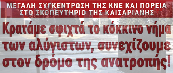 Μετά την συγκέντρωση, με τα συνθήματα «ΚΚΕ το κόμμα σου λαέ», «Ούτε σε ξερονήσια ούτε σε φυλακές ποτέ τους δε λυγίσανε οι κομμουνιστές», «ΕΑΜ, ΕΛΑΣ, ΕΠΟΝ, ΟΠΛΑ, ΔΣΕ δόξα και τιμή στο ΚΚΕ» να αντηχούν στις γειτονιές της Καισαριανής η μεγάλη κατακόκκινη πορεία φτάνει στην πύλη του Σκοπευτηρίου.