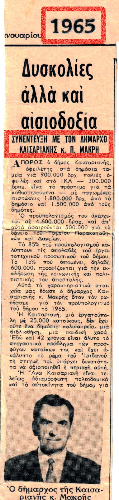 Το δημαρχιακό γραφείο και το βιογραφικό του αγωνιστή της εθνικής αντίστασης που εξορίστηκε για χρόνια από το μεταδεκεμβριανό καθεστώς και την χούντα. Δήμαρχος Καισαριανής από το 1964 έως το 1990.