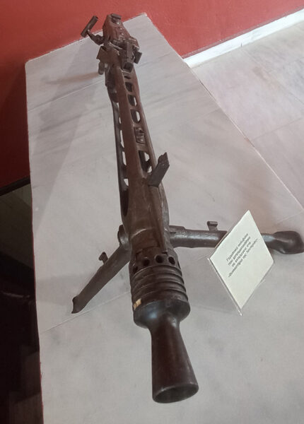 - Στον χώρο επίσης εκτίθενται τα 2 οπλοπολυβόλα απ’ αυτά που χρησιμοποιούσαν οι Γερμανοί για τις εκτελέσεις τους στο σκοπευτήριο και παραδόθηκαν στον ΕΛΑΣ μετά την απελευθέρωση της πόλης.
