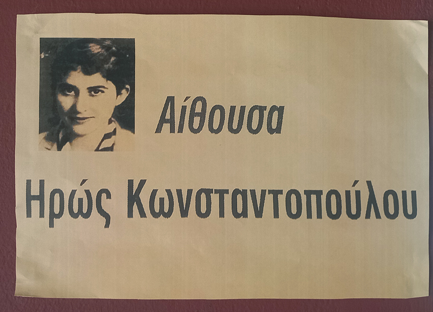 Αίθουσα “Ηρώ Κωνσταντόπουλου” _17χρονη ΕΠΟΝίτισσα ου εκτελέστηκε τον Σεπτέμβρη του ’44. (δεξιός πύργος του κτηρίου). Ο χώρος περιέχει: