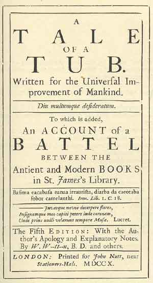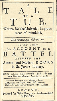 - 1704: A Tale of a Tub (Ιστορία της Σκάφης). Σάτιρα των διαιρέσεων του Χριστιανισμού