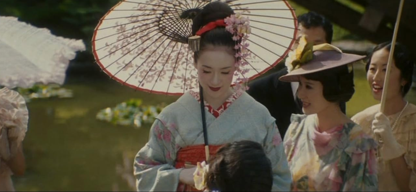 Memoirs of a Geisha ταινία εποχής αμερικανικής παραγωγής του 2005 σε σκηνοθεσία Ρομπ Μάρσαλ με μεγάλα ονόματα Ziyi Zhang Ken Watanabe Michelle Yeoh κά σε υποστηρικτικούς ρόλους, βασισμένο στο ομότιτλο μυθιστόρημα του Άρθουρ Γκόλντεν (1997 _best seller και στην Ελλάδα) υποψήφια για έξι Oscars _ κέρδισε ευτυχώς “στα σημεία” τρία: καλύτερης φωτογραφίας, καλλιτεχνικής σκηνοθεσίας (;;) και ενδυματολογίας. Επίσης οι ερμηνείες των ηθοποιών, τα γραφικά, τα σκηνικά, τα κοστούμια και η μουσική σύνθεση (που συνέθεσε ο μακροχρόνιος συνεργάτης του Σπίλμπεργκ, John Williams) επαινέθηκαν, αλλά η ταινία επικρίθηκε “για την προσέγγιση του στυλ έναντι της ουσίας”. Πήρε πάντως + 32 βραβεία και είχε 47 υποψηφιότητες Η ιαπωνική κυκλοφορία της είχε τον τίτλο Σαγιούρι, το όνομα της γκέισας του πρωταγωνιστικού χαρακτήρα.