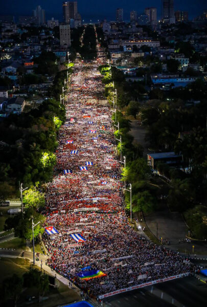 Σε μια νέα επίδειξη ενότητας, πατριωτικής επιβεβαίωσης και δέσμευσης στην πατρίδα, περισσότεροι από 600.000 κάτοικοι της Αβάνας διαδήλωσαν στην Πλατεία της Επανάστασης και σε όλη την Κούβα ο αριθμός ξεπέρασε τα 5,3 εκατομμύρια καθιστώντας την Πρωτομαγιά _όπως κάθε χρόνο μια ακόμη ιστορική ημέρα για το νησί