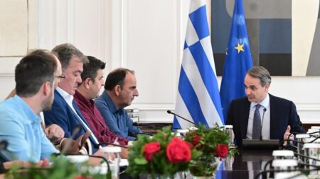 Στο Μέγαρο Μαξίμου η αντιπροσωπεία των μπλόκων των βιοπαλαιστών αγροτών. Ο Ρίζος Μαρούδας πρόεδρος της Ενωτικής Ομοσπονδίας Αγροτικών Συλλόγων ν.…