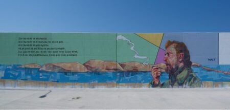 Γκράφιτι με τη μορφή και τους στίχους του ποιητή Γιάννη Ρίτσου κοσμεί πλέον έναν τοίχο στον Άη Στράτη, το νησί σύμβολο…