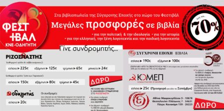 Μεγάλες προσφορές στα βιβλιοπωλεία της Σύγχρονης Εποχής στο χώρο του Φεστιβάλ ΚΝΕ-ΟΔΗΓΗΤΗ