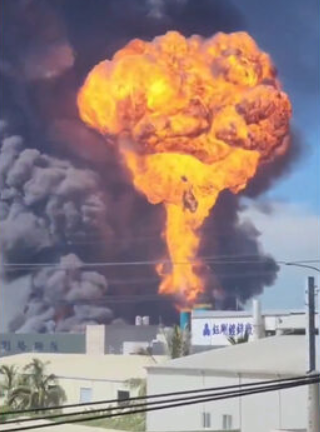 Το Γραφείο Προστασίας Περιβάλλοντος της πόλης εξέδωσε αργότερα ξεχωριστή δήλωση προειδοποιώντας για κακή ποιότητα του αέρα, μετά την ανίχνευση λεπτών σωματιδίων σε μια περιοχή περίπου 6 χιλιομέτρων γύρω από το εργοστάσιο. Στο μεταξύ, το εργοστάσιο βρίσκεται κοντά στο Διεθνές Αεροδρόμιο Καοσιούνγκ, αλλά το αεροδρόμιο δήλωσε ότι οι πτητικές του δραστηριότητες δεν επηρεάστηκαν από το νέφος.
