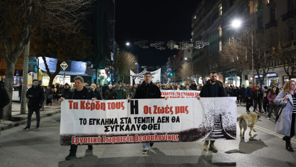 Με συνθήματα «Κέρδη βουτηγμένα στου λαού το αίμα» και «Η δίψα για τα κέρδη φτιάχνει νέα Τέμπη», κατήγγειλαν την πολιτική που βάζει τα κέρδη πάνω από τις ανθρώπινες ζωές.