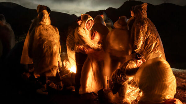 Το δεύτερο, «Night Crossing» του John Moore που τραβήχτηκε για την Getty Images, απεικονίζει Κινέζους μετανάστες να μαζεύονται κοντά σε μια φωτιά κατά τη διάρκεια μιας κρύας βροχής αφού διέσχισαν τα σύνορα ΗΠΑ-Μεξικού.